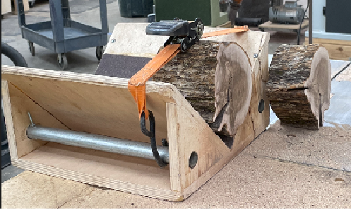#73 Large Blade Saw is only for cutting wet or green wood such as logs. Note the V shaped jig to secure the log. When working with wet or green wood the bade needs to be cleaned after each use. Cleaning Blades