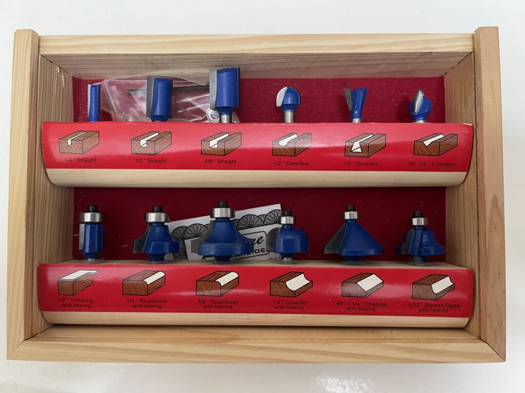 The tool crib also caries several “Matched Bit” sets. These are used for making things like stile and rail doors where the rail fits into the stile at a 90-degree angle to form a corner. A slot is also cut in both the stile and rail to hold a panel.