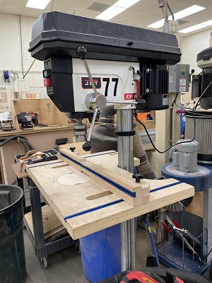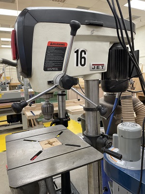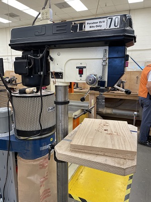 The SCW Wood Workers club has 3 Drill Presses. Their basic function is to make perpendicular holes.
