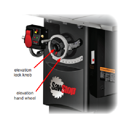 • Loosen the elevation lock knob before making any blade height adjustments.
