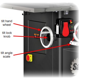 • Tighten the tilt locking knob to lock the blade at the selected angle.